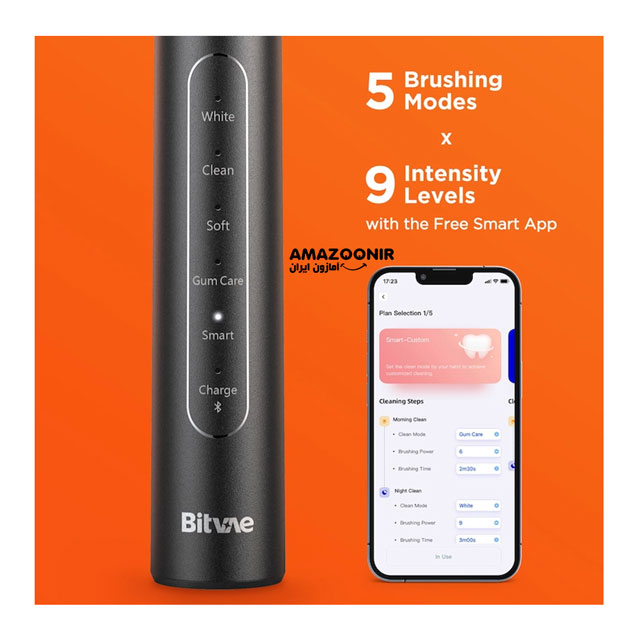 - 5 حالت تنظیم مسواک (تمیز، سفید، نرم، مراقبت از لثه، هوشمند)