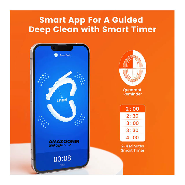 - تایمر هوشمند / تقسیمبندی زمان : ۲ دقیقه کل زمان مسواکزدن، با توقف کوتاه هر ۳۰ ثانیه برای یادآوری تعویض منطقه مسواکزدن