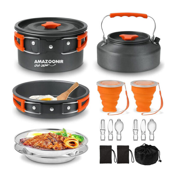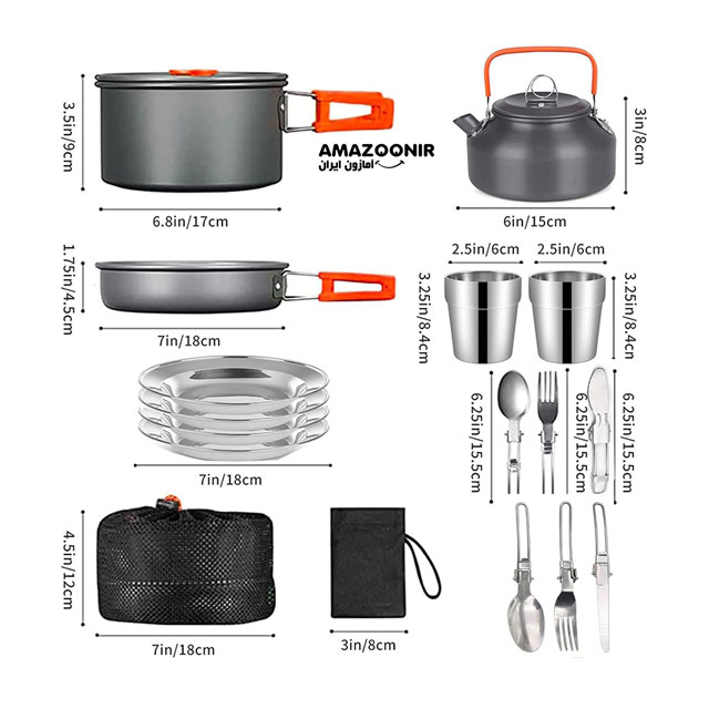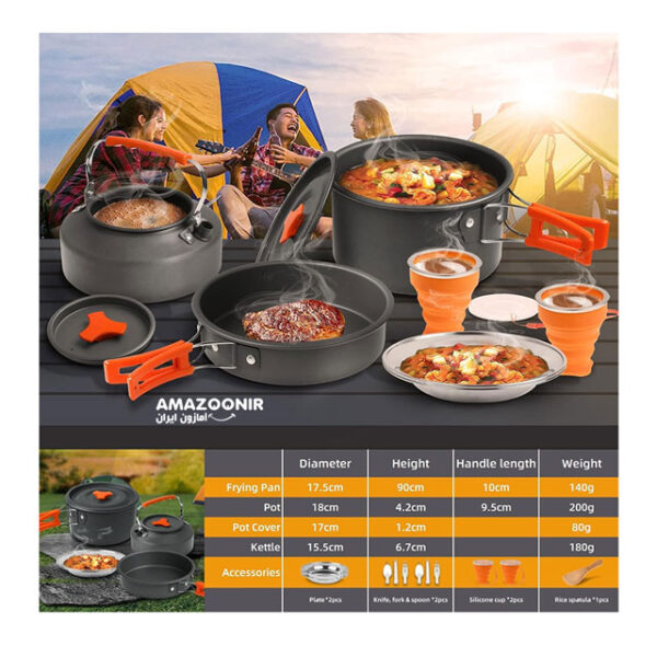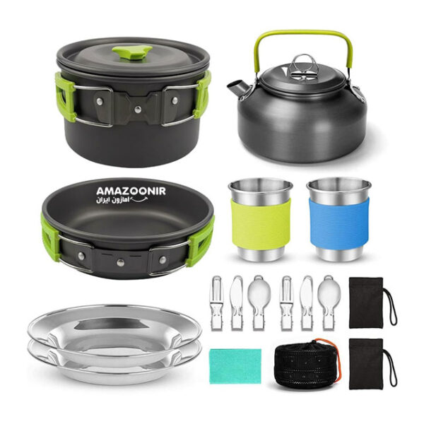 قابلمه، ماهیتابه و کتری این ست از جنس آلومینیوم با روکش نچسب ساخته شدهاند که علاوه بر پختوپز سریع و یکنواخت، شستشو را نیز بسیار آسان میکند. همچنین وجود لیوانها، بشقابها و قاشق و چنگال استیل ضدزنگ باعث میشود مجموعهای کامل و بادوام برای استفاده گروهی در اختیار داشته باشید.