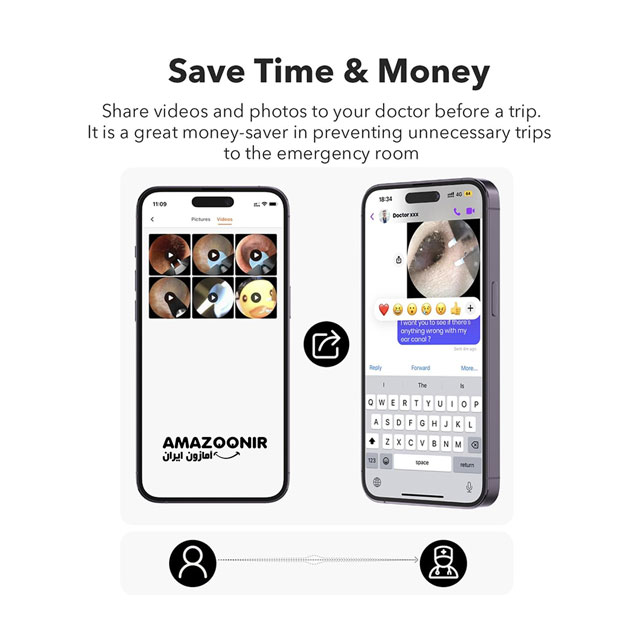 دوربین HD با وضوح ۱۰ مگاپیکسل + 1080 p — تصویر واضح از مجرای گوش برای تمیزکاری دقیق و بدون خطر.