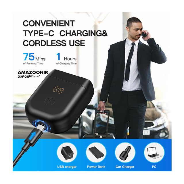 تیغههای چرخشی دوگانه دستگاه، اصلاحی نرم و یکنواخت ارائه میدهند و از تحریک پوست جلوگیری میکنند. نمایشگر LCD وضعیت باتری را به صورت لحظهای نشان میدهد و امکان مدیریت بهتر شارژ را فراهم میکند. با باتری لیتیوم داخلی و شارژ سریع USB-C، دستگاه حدود ۷۵ دقیقه پس از یک ساعت شارژ آماده استفاده است.