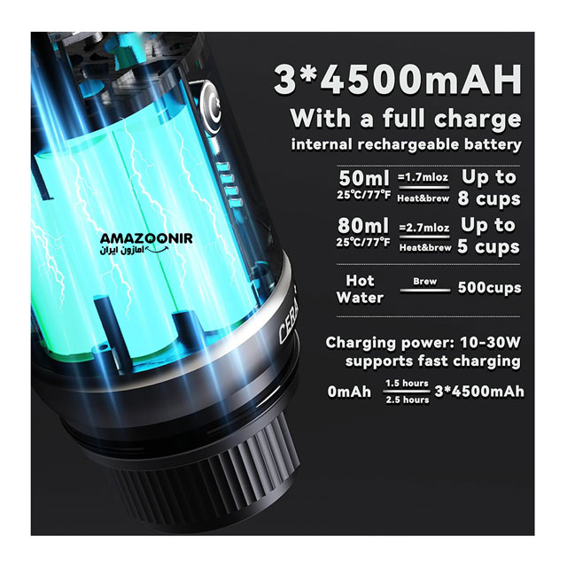 - تعداد فنجان در هر شارژ: حدود 8 فنجان با آب سرد یا بیشتر با آب گرم از قبل گرم شده