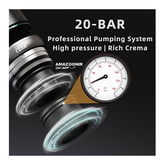 - فشار پمپ : 20 بار – عصارهگیری حرفهای با کرمای غنی