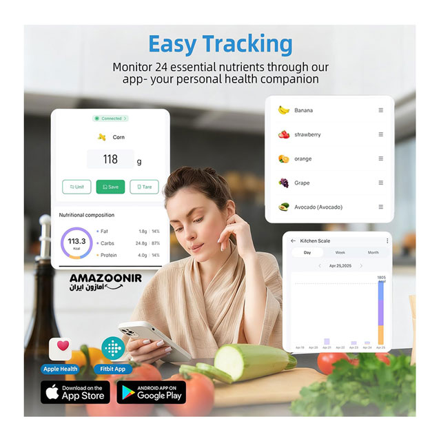 - کاربرد: کاهش وزن، رژیم غذایی، کنترل کالری، آشپزی دقیق