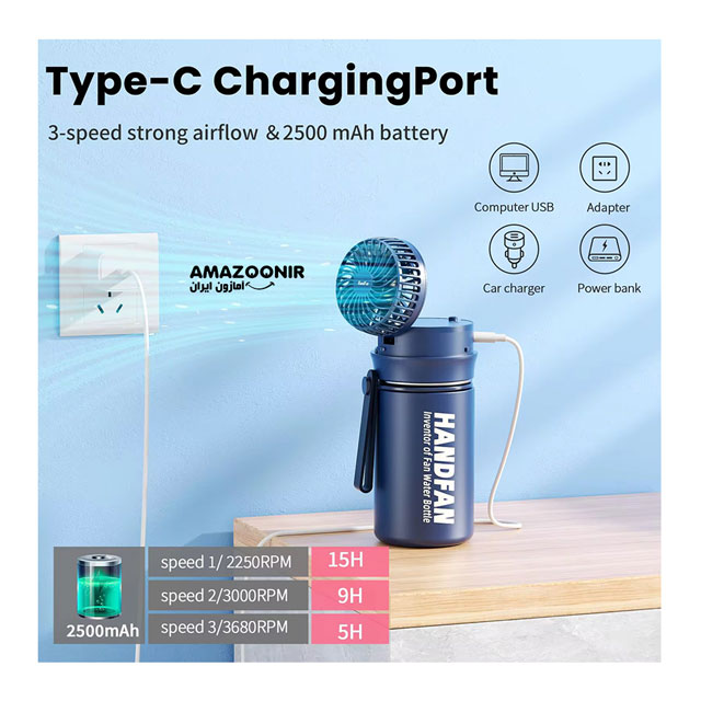 با بطری آب فندار HandFan همزمان تشنگیتان را برطرف کنید و خنک بمانید!