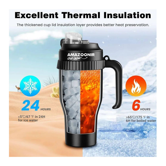 حفظ دما: عایق خلأ دو جداره که دمای نوشیدنی را تا ۲۴ ساعت حفظ میکند و برای نوشیدنیهای گرم و سرد مناسب است.