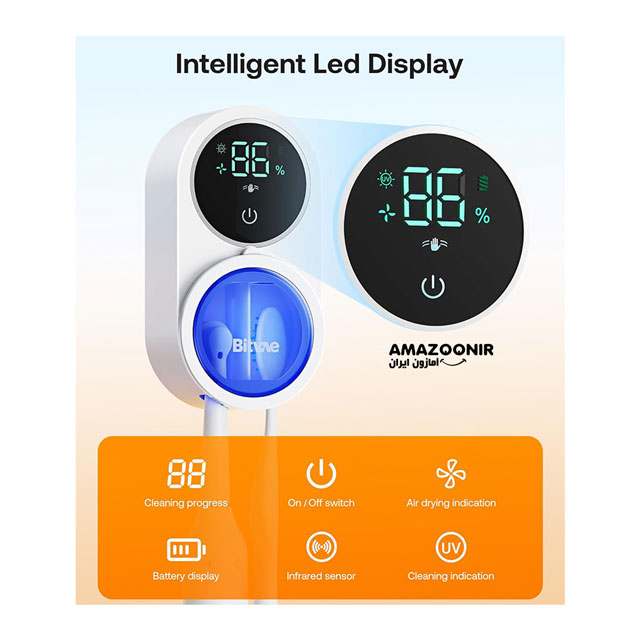 • نمایشگر : LED هوشمند برای نمایش شارژ، روند ضدعفونی و وضعیت خشک‌کردن